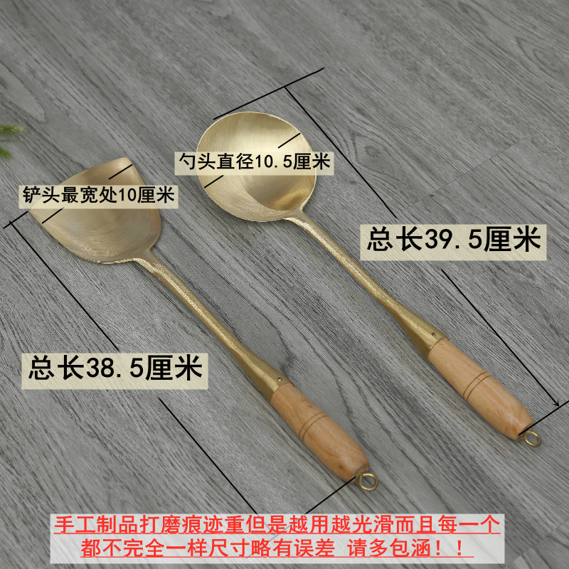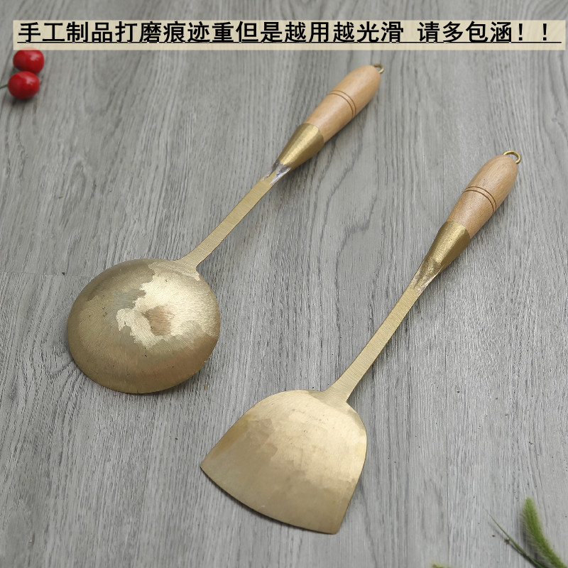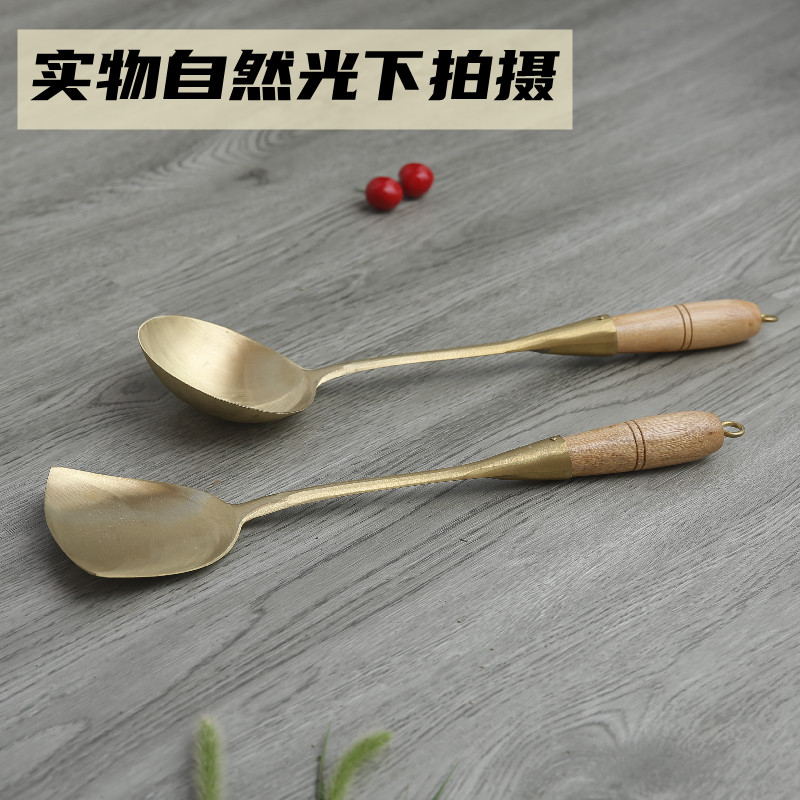 Pure brass extended copper spoon dumplings spoon bronze cook scrubbed copper shovel scramble shovel old style