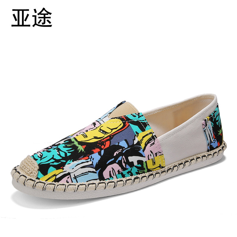 2022 new Korean version of the trend of men's shoes all-match casual lazy shoes beanie shoes men's social boy flower cloth tide shoes