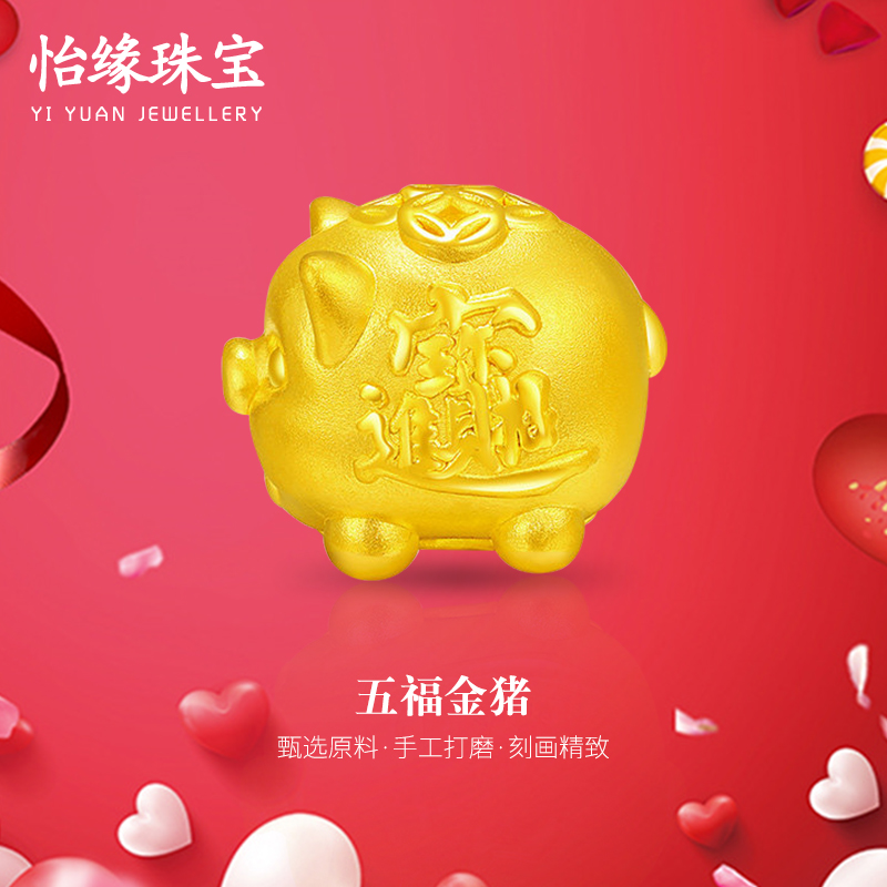 The new gold piggy 12 zodiac pig transfer bead bracelet female 3D hard gold 999 pure gold small gold pig baby gold jewelry