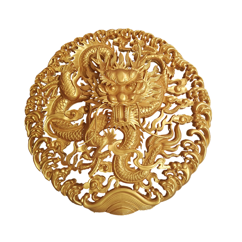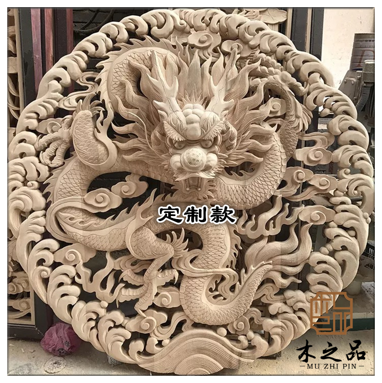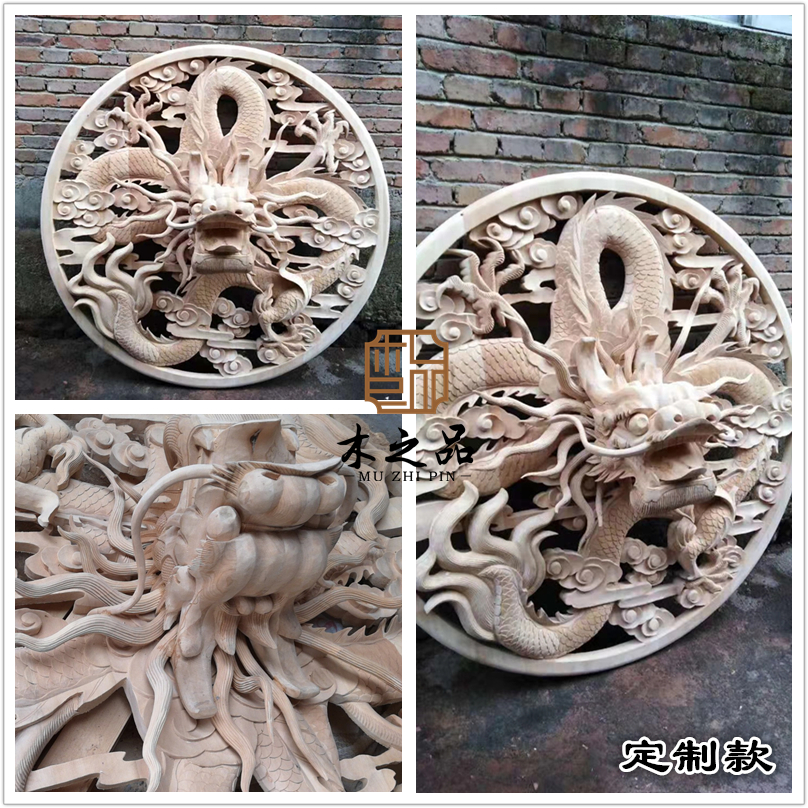 Dongyang woodcarving porch Chinese dragon head Dragon plate wall hanging hotel tea house wall decoration Golden Dragon round single dragon pendant