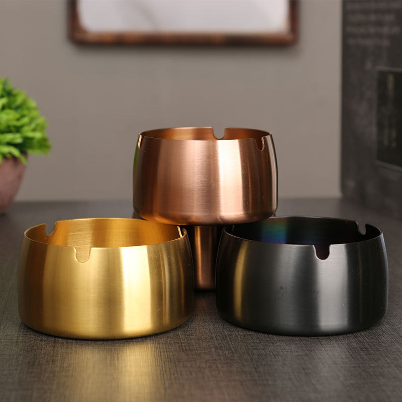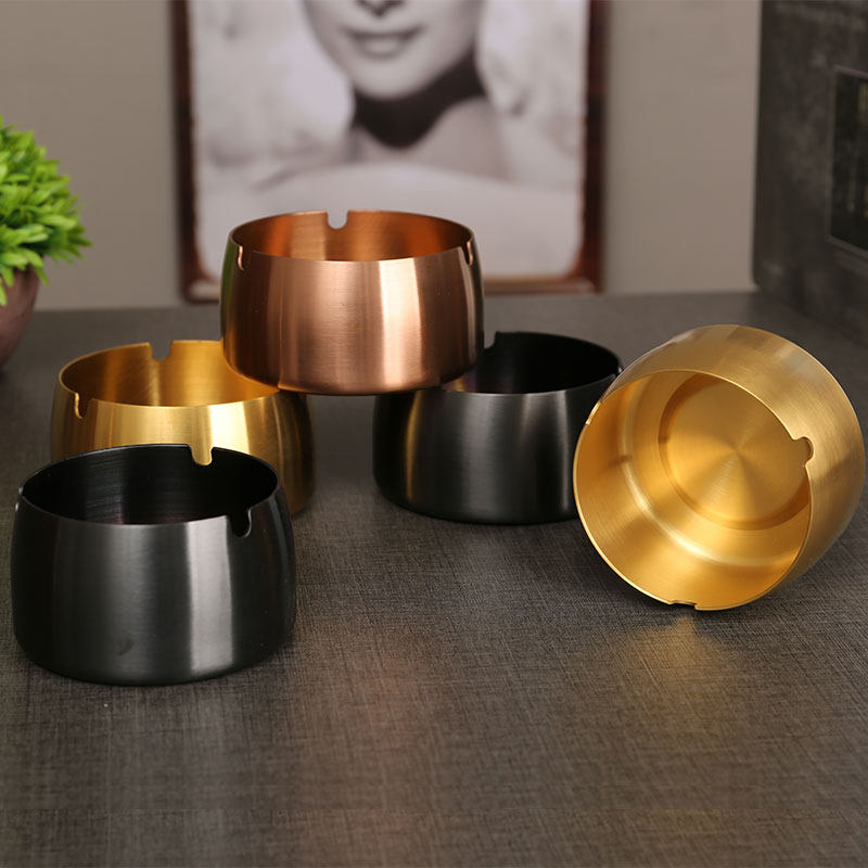 Creative Personality Trend Metal Stainless Steel Ashtray Light Lavish Commercial Home Living Room On-board Anti-Fall Anti-Fly Ash