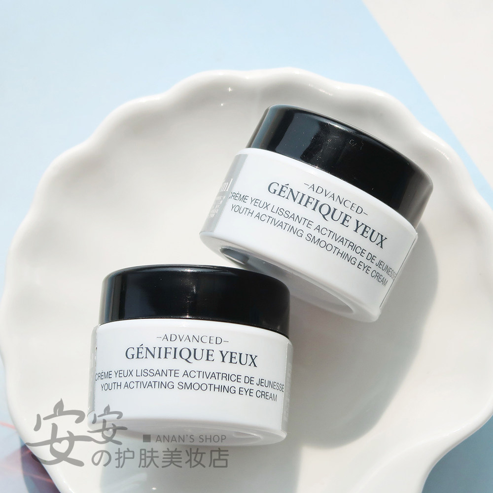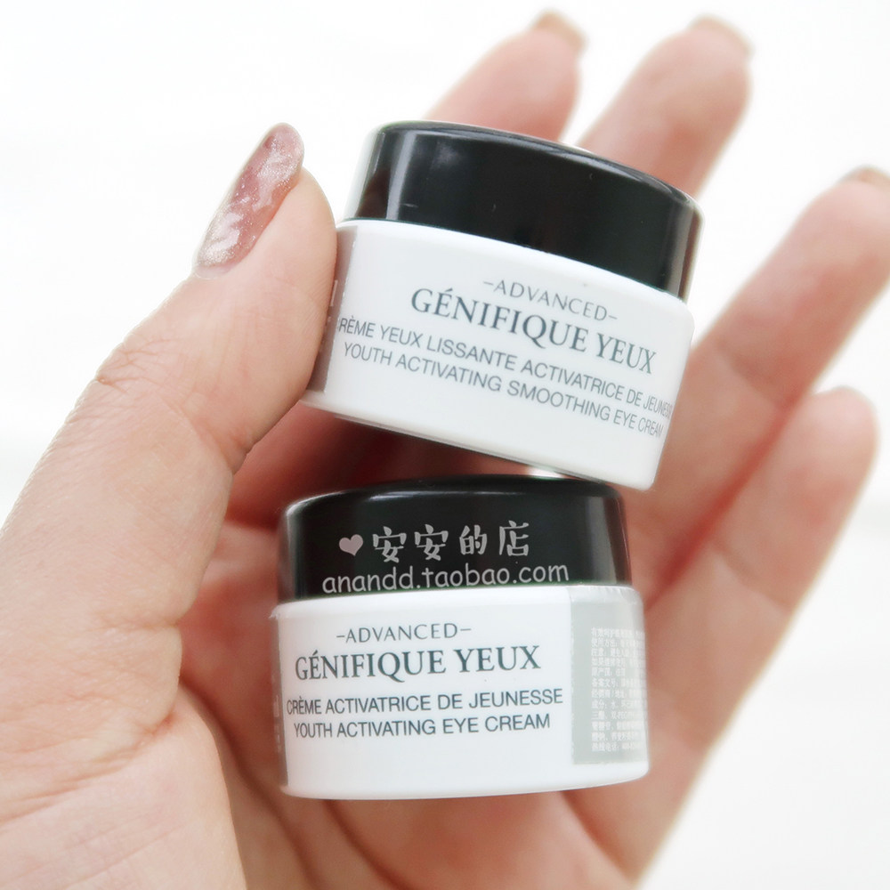 3 small black bottles of glowing eye cream Lancôme Essence Muscle Base Eye Cream 5ml rejuvenates the eye