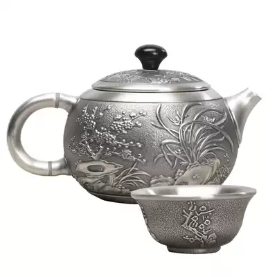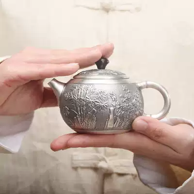 Taian Silver Sterling silver 999 Tea set Silver teacup Silver teapot Sterling silver Meilan bamboo Chrysanthemum Kung Fu tea set