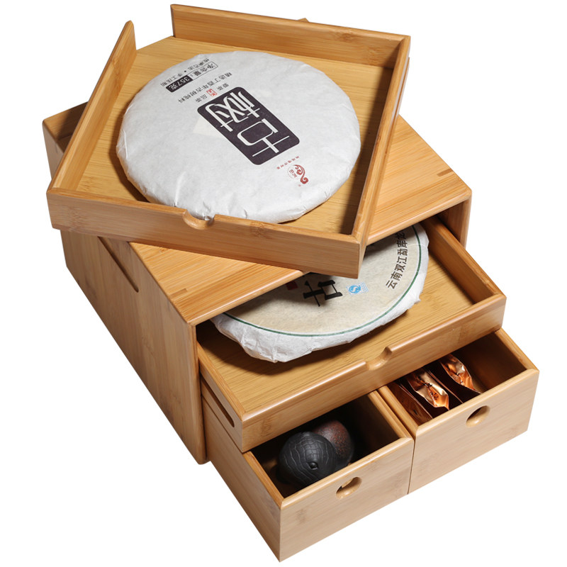 Rock Xiangfang Bamboo Pu'er tea box Sub-tea box Tea containing cabinet Multi-layer Pu-tea cabinet Bamboo Tea Cake Cabinet