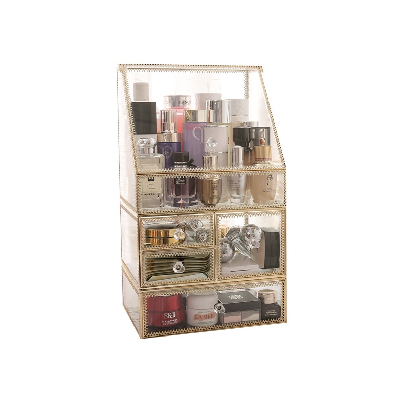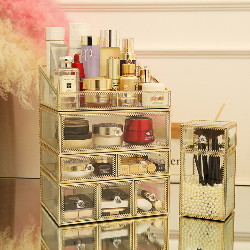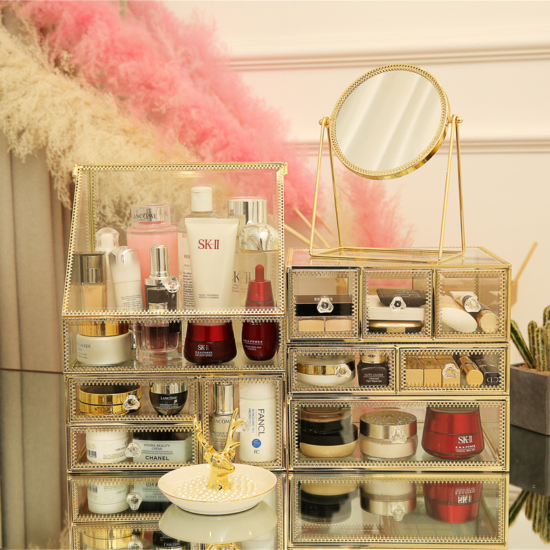 Net red glass cosmetic storage box dust-proof desktop makeup table skin care products lipstick rack European makeup box