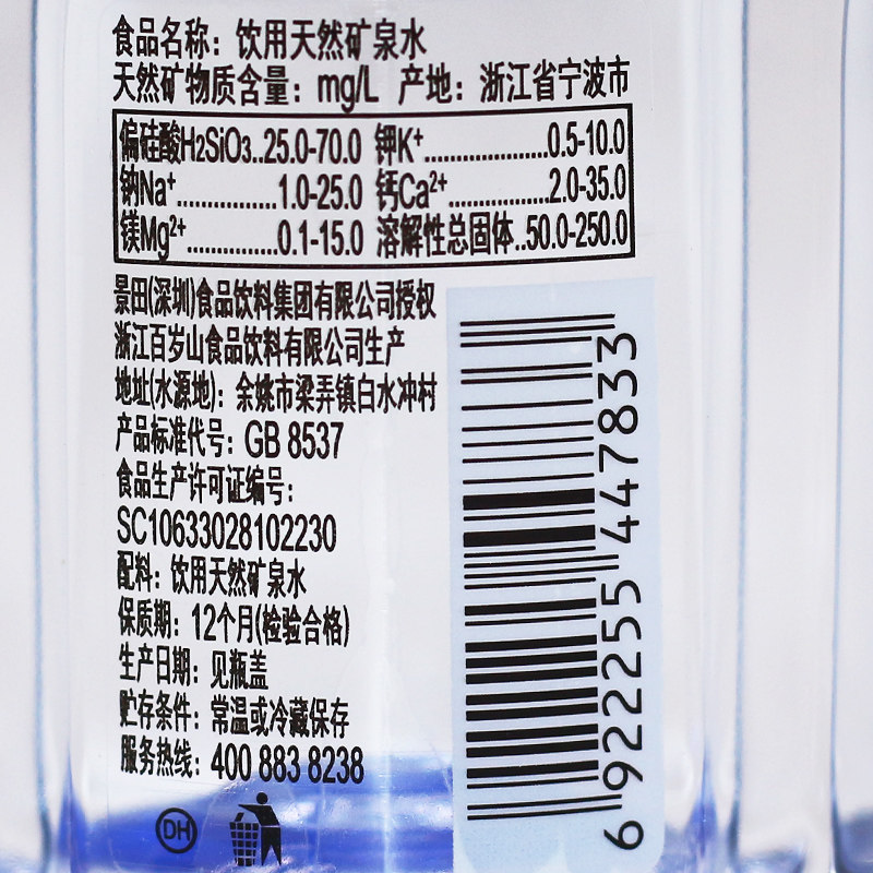 Jingtian Baise Mountain Mineral Water 348ml * 24 bottles of whole box mineral water