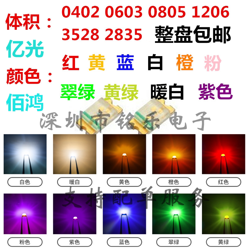 SMD LED LED 0402 0603 0805 1206 3528 red, yellow, blue, green, white, purple, pink, orange