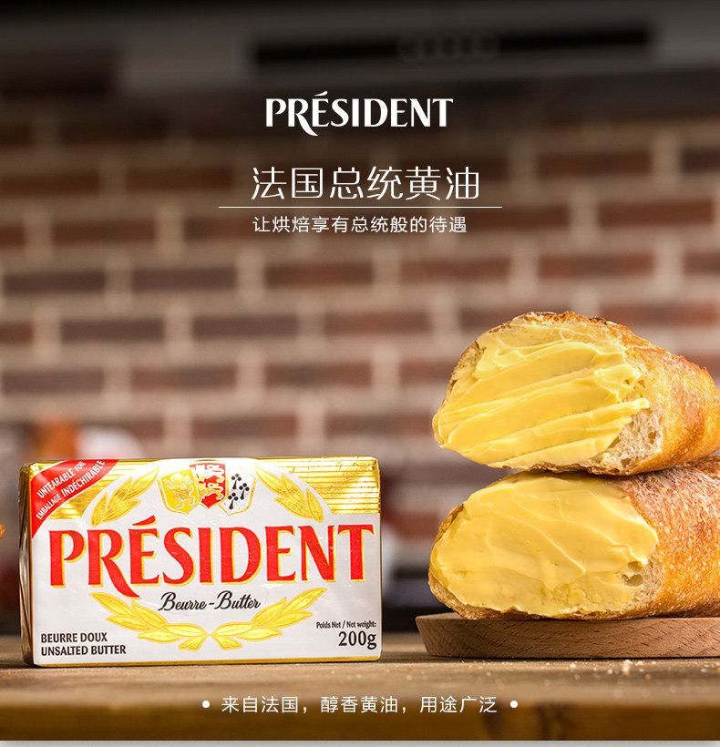PresidentPresident Light Taste Cream Block 200g Animal Sexual Light Taste Bull Oil Western Meal Baking Cream