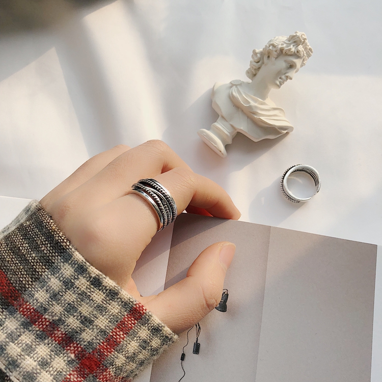 South Korean Trend Male Opening Rings Lovers Silver Hollowed-out Retro Ring Hip Hop for Old Wound Personality Ring