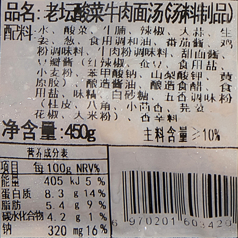 Frozen Cuisine Bag Old Tartan Sour Vegetable Beef Noodle Soup 4500g