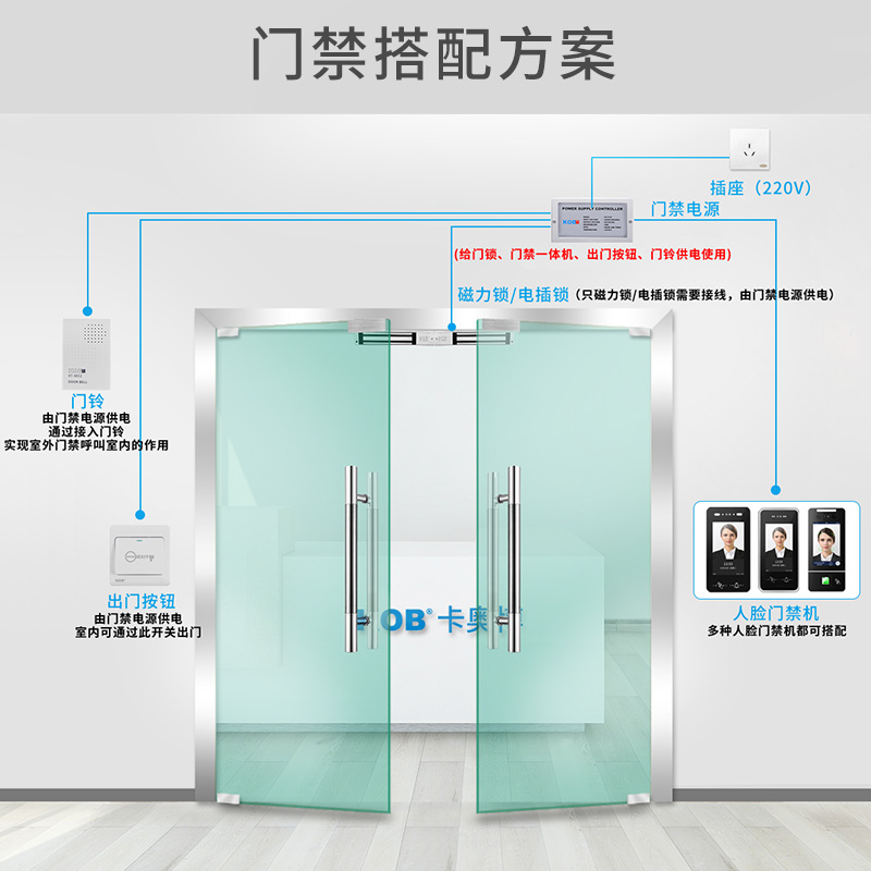 KOB Dynamic Face Recognition Access Control Intelligent Electromagnetic Lock Fingerprint Brush Face Attendance Access Control System All-in-One Machine Set