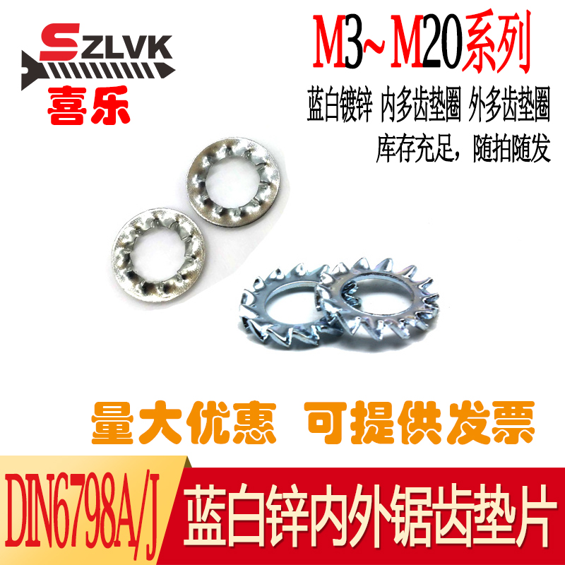 Blue White Galvanized Inner Serrated Gaskets Outside Serrated Gaskets DIN6798A J Teeth Spacer Serrated Gaskets