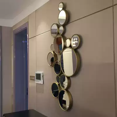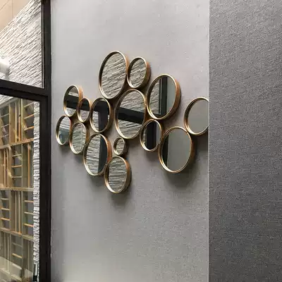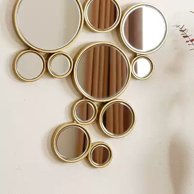 European decorative mirror wall hanging creative background wall living room dining room porch mirror light luxury combination American round wall