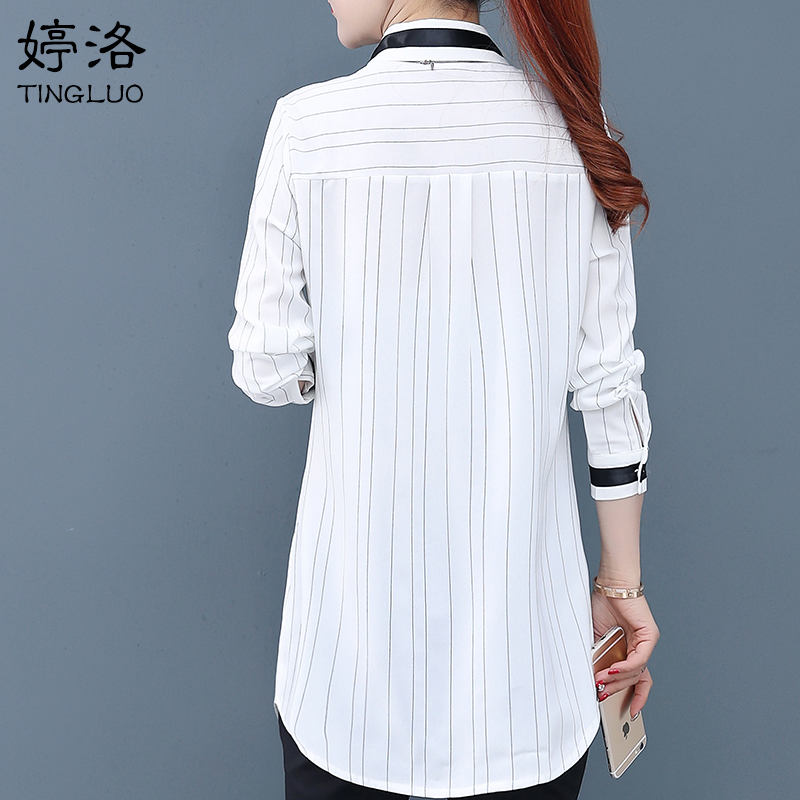 White chiffon shirt women's mid-length version 2021 early autumn new loose large size anti-wrinkle top long-sleeved women's shirt