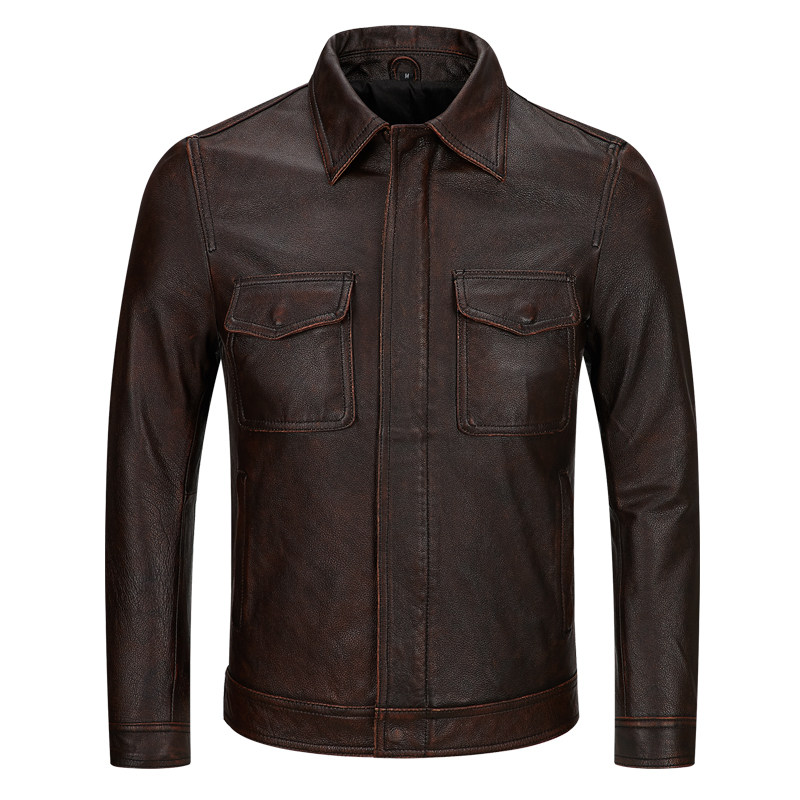 Ammy click the heady layer of cow leather retro stone mill for old genuine leather clothing men short sashimi leather jacket