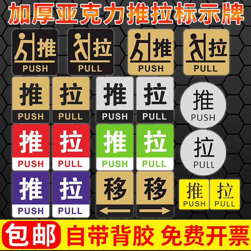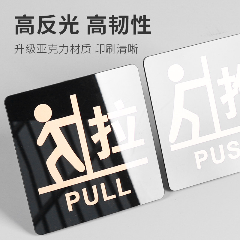 Acrylic pull door number notice label sticker Glass door number indication sticker Sign language warm reminder Warning sign Creative sticker Hotel convenience store office left and right sliding door support customization