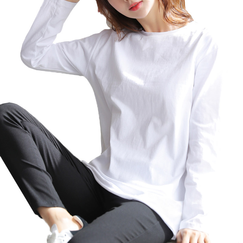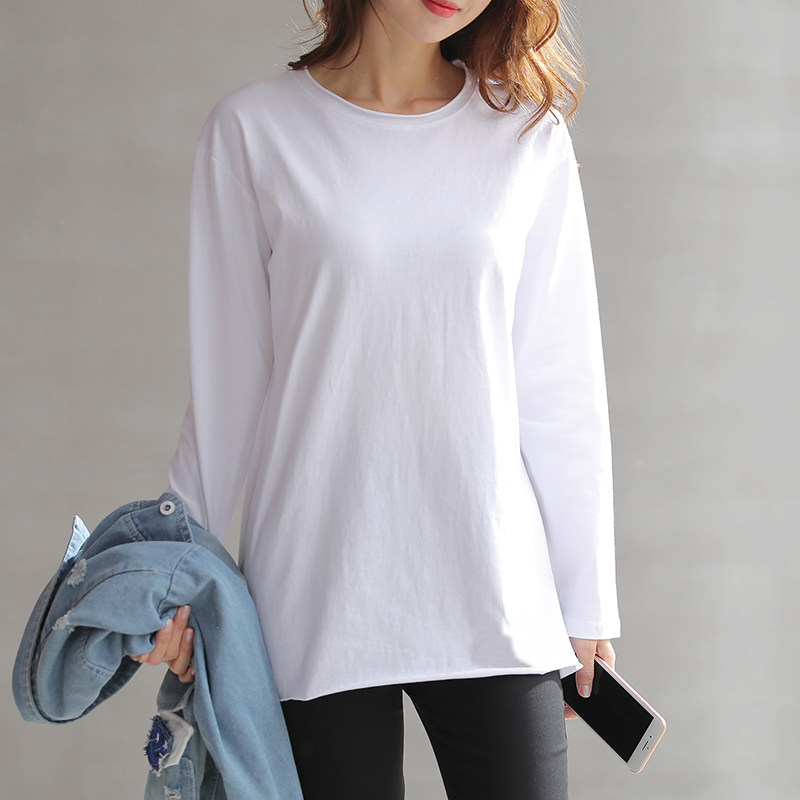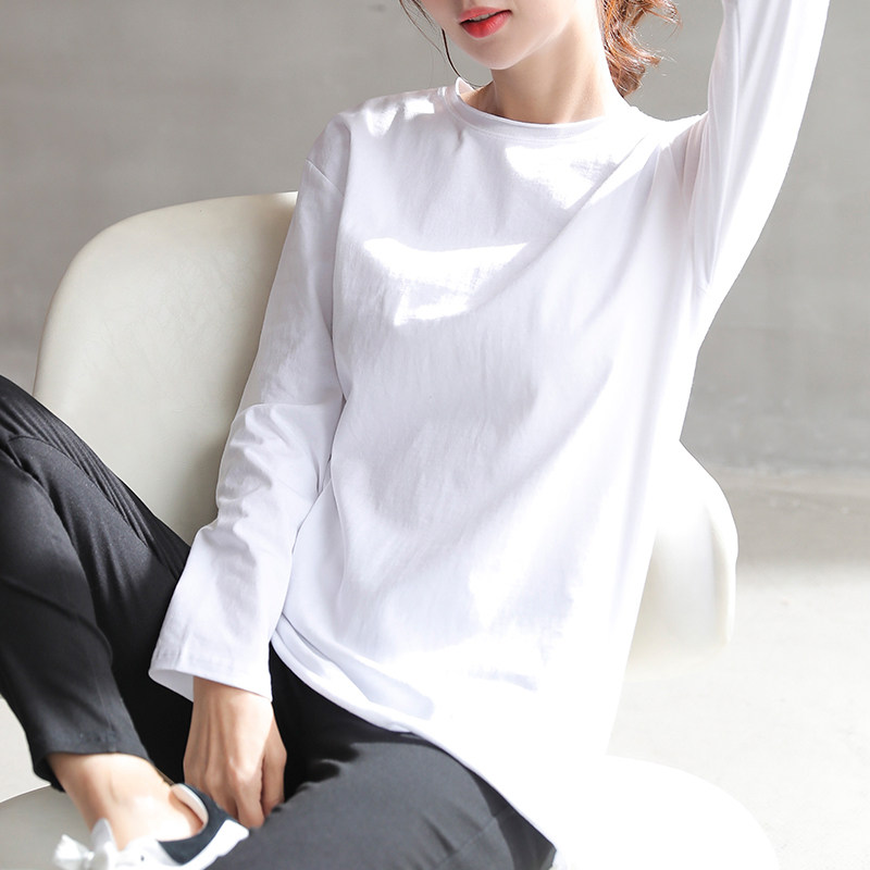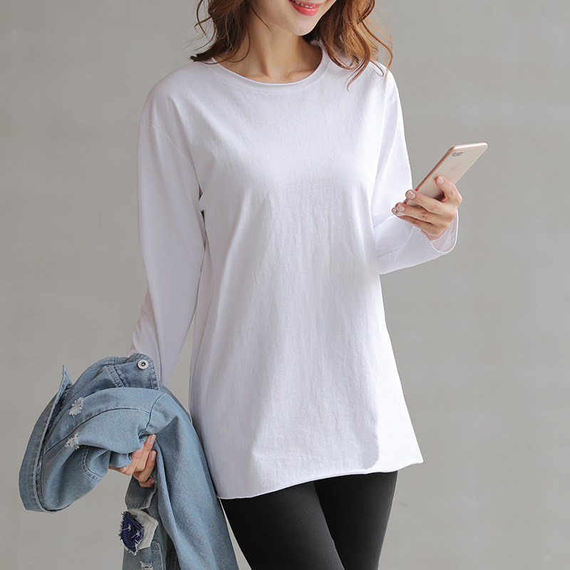 2022 new spring autumn round collar white undershirt long sleeve T-shirt female Korean version loose medium long version blouse T-shirt