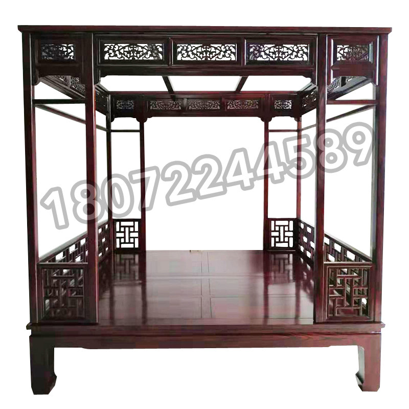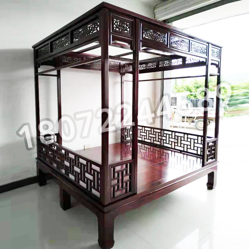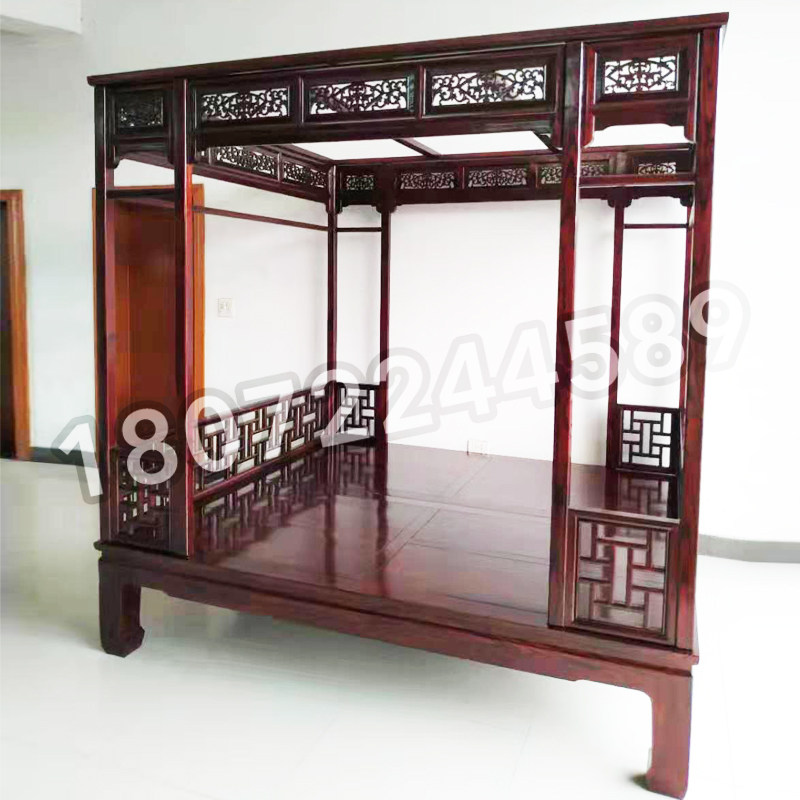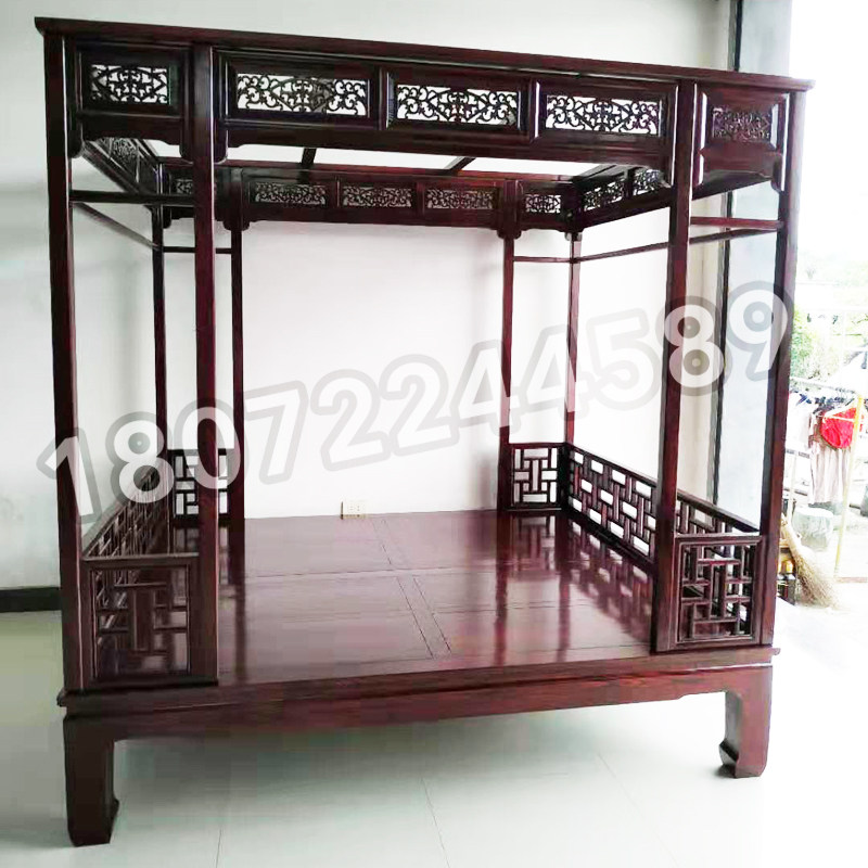 Imitation antique red floral pear color solid wood shelf bed Ming and Qing furniture ten thousand words plaid beds palace ancient wind bed meditation bed