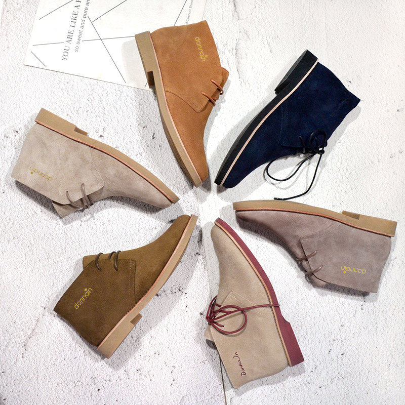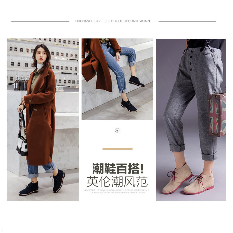 Eurna frosted leather Martin boots ladies retro short boots Inn wind flat low for leather and ankle comfort Desert Boots