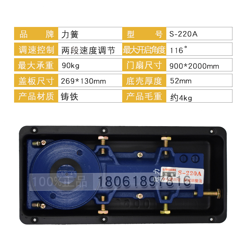 Force spring glass door floor spring S-220A ground bounce huang aluminum alloy framed door frameless door universal hardware accessories