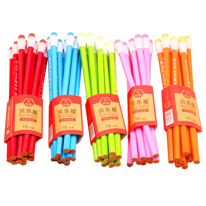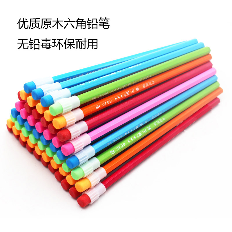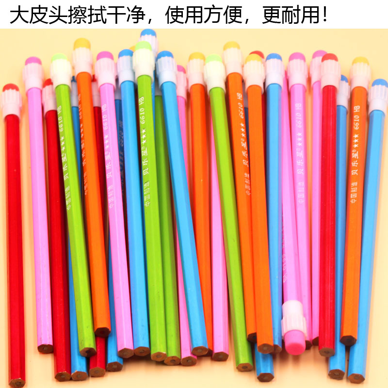 Large leather head log pencil HB hexagonal pencil pupils school supplies children's stationery pencil sharpener set