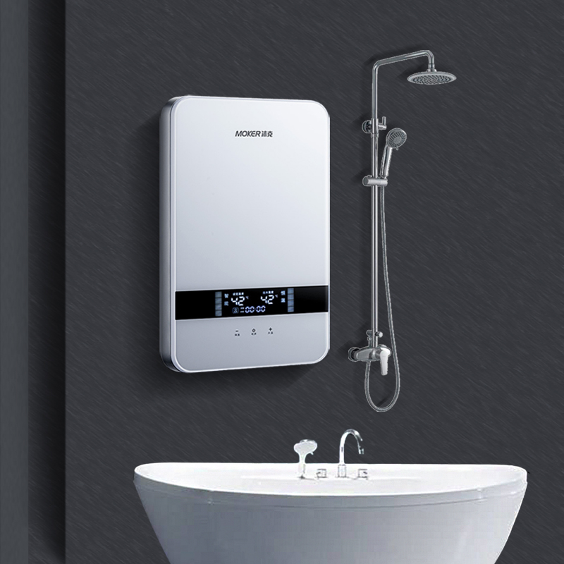 Bathroom with instant electric water heater smart thermostatic upright speed water heater rental with home bath dressing room