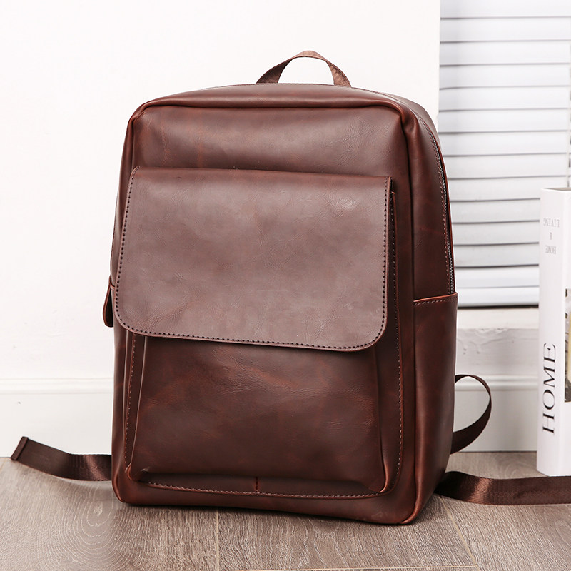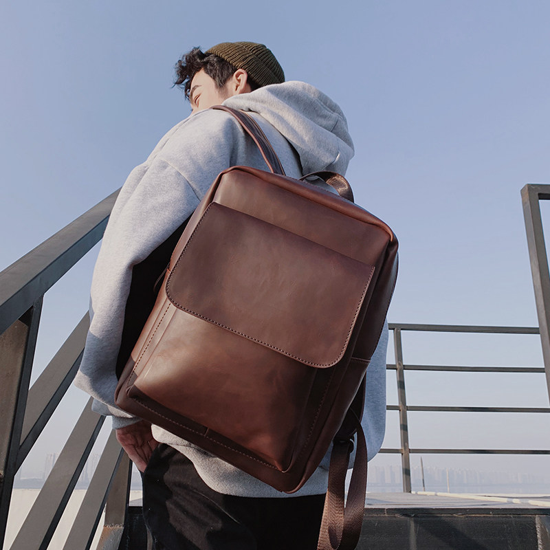 Retro Double Shoulder Bag Men Bag Tide Card Casual Youth Scapegoat Han Edition Brief Fashion Travel Bag Vertical PURE COLOR PACKAGE BAG