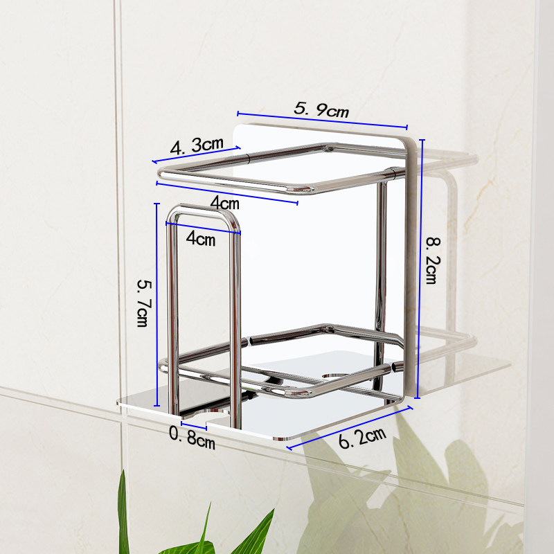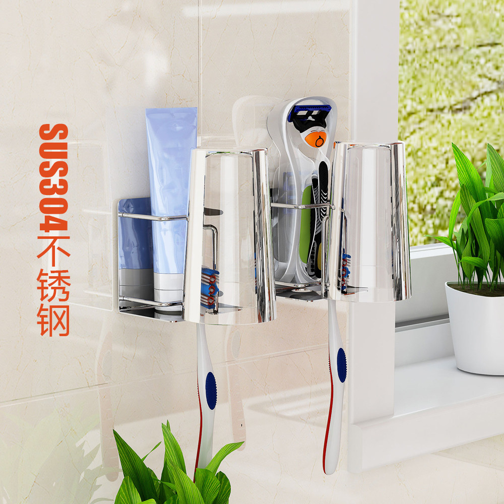 Stainless steel toothbrush shelf Powder room wall-mounted non-perforated brushing cup mouthwash cup toothbrush holder Household storage shelf