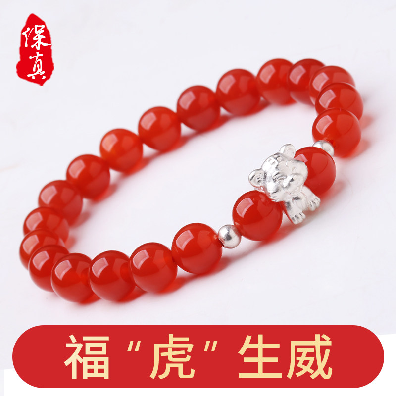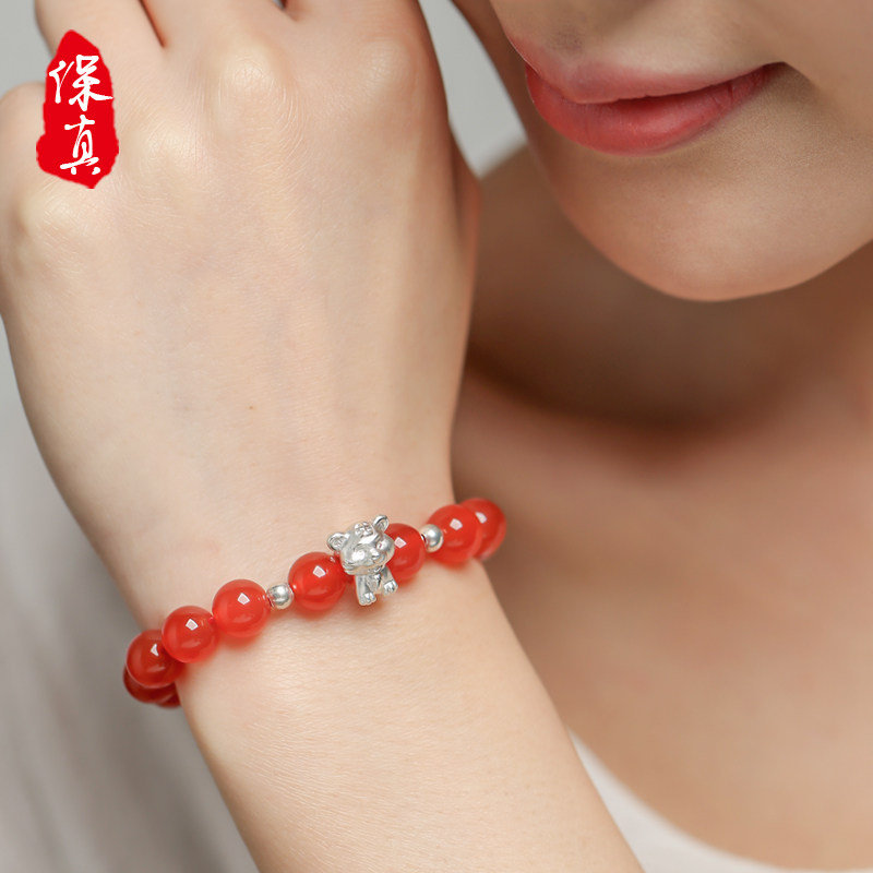Natural red agate hand-carved female natal year red rope zodiac ox sterling silver crystal jewelry Valentine's day bracelet gift