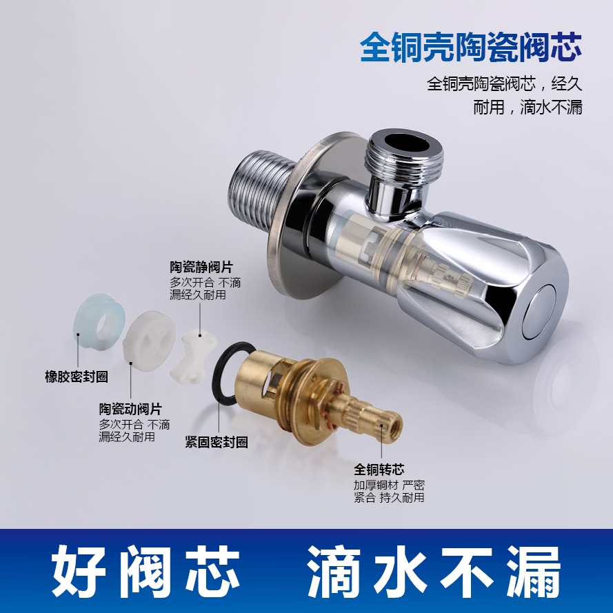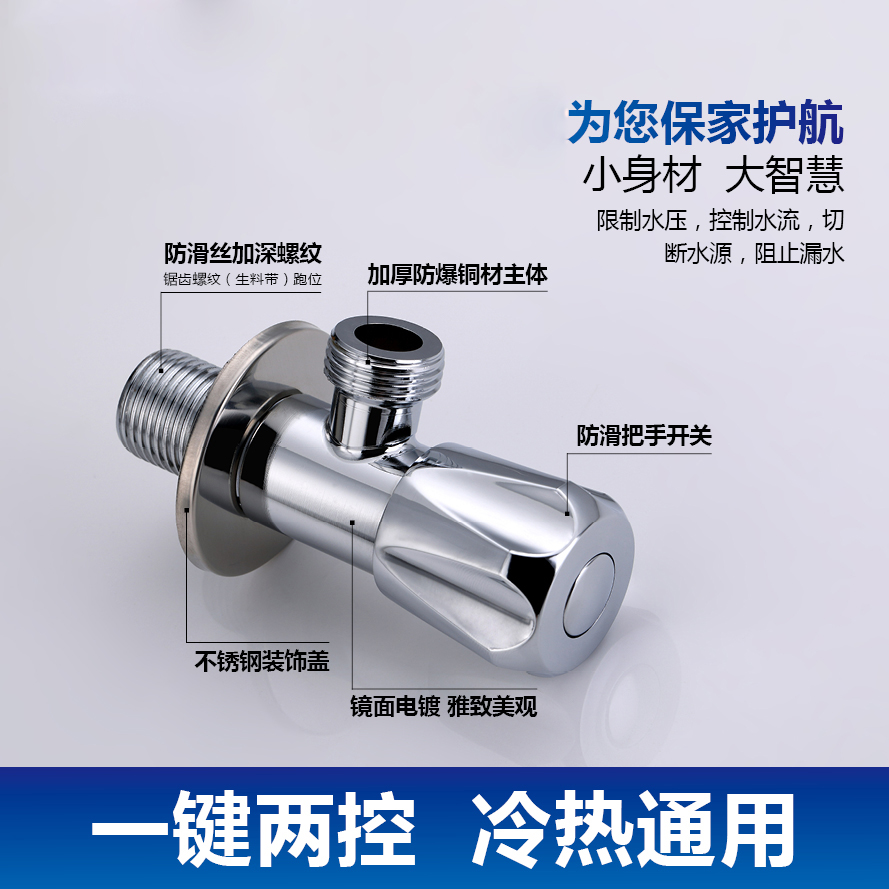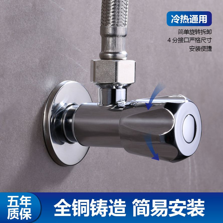 Crown Full Copper Angle Valve Stainless Steel Triangle Valve Water Outlet Valve Switch Hot and cold water Water-water Valve Water-stop Valve 1-in-2 out