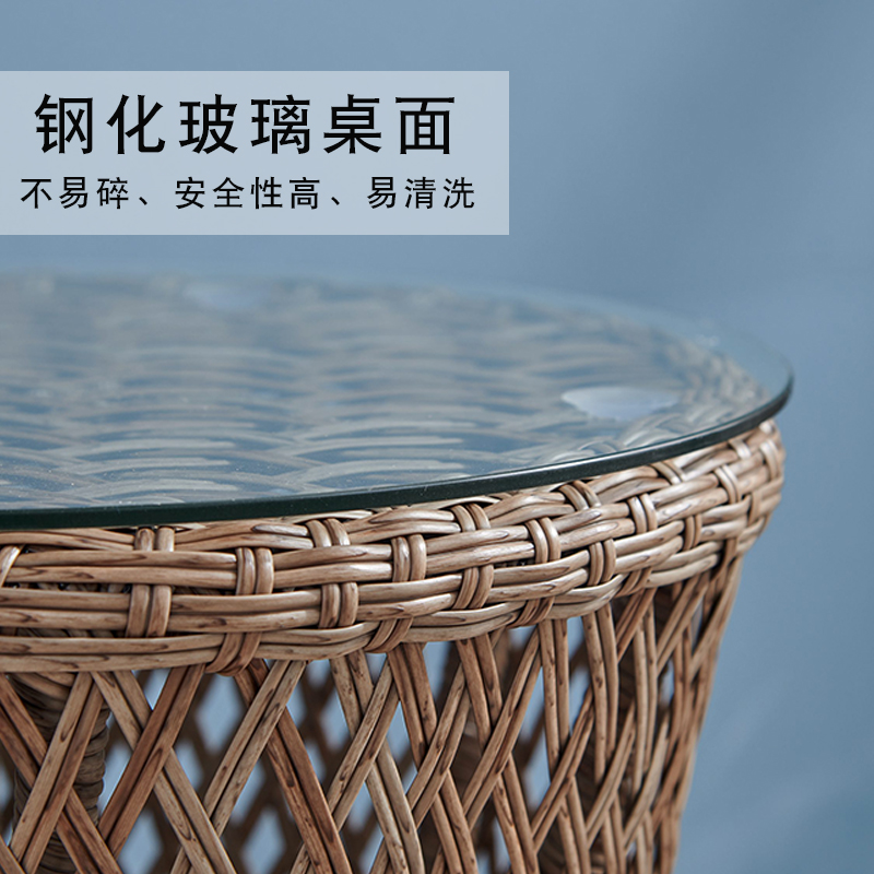 Zile Furniture Rattan Chair Three-piece Balcony Leisure Table and Chair Outdoor Rattan Table and Chair Coffee Table Combination Bedroom Table and Chair