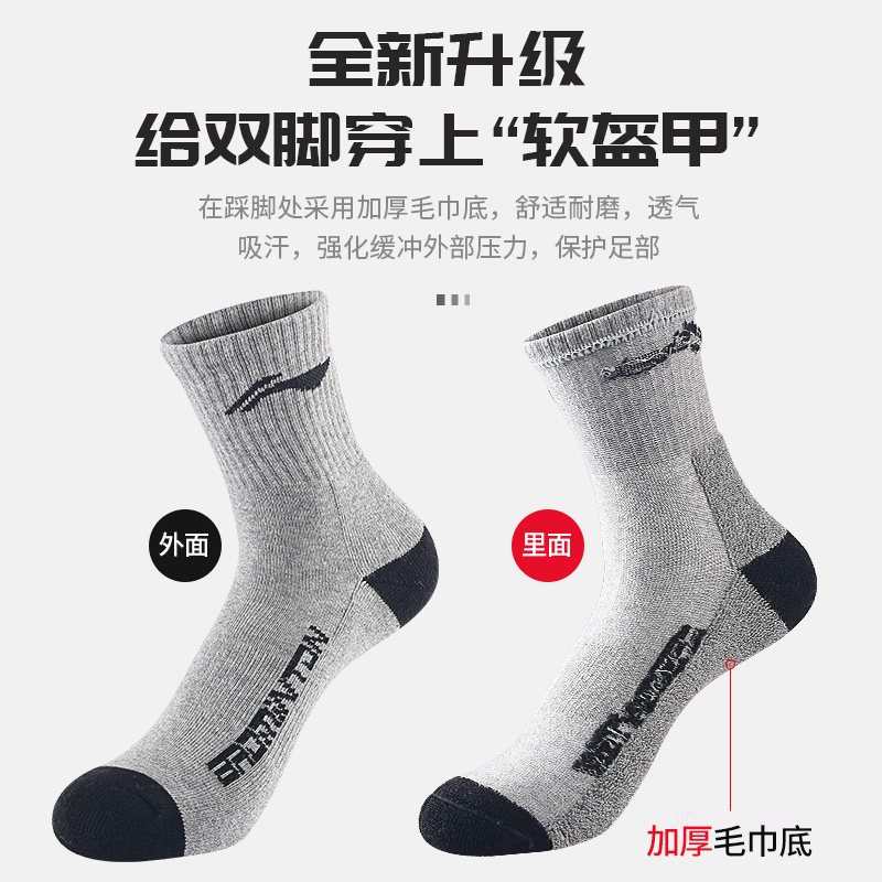Li Ning sports socks men's and women's badminton running in the barrel breathable high gang basketball socks professional thick towel bottom socks