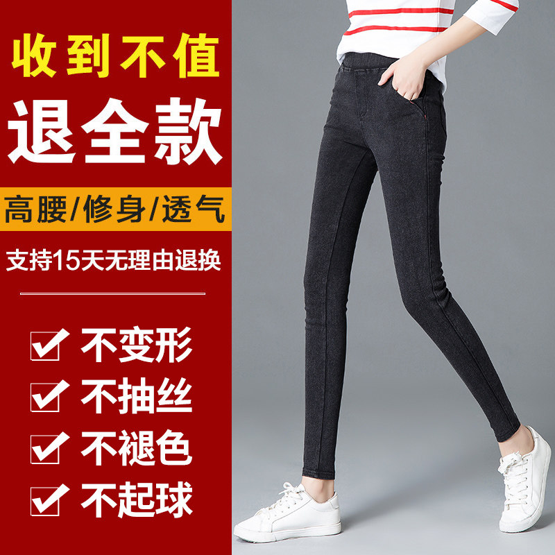 Pencil trousers women's pants large size leggings women's outer pants denim stretch plus velvet spring and autumn winter fat mm tight fit