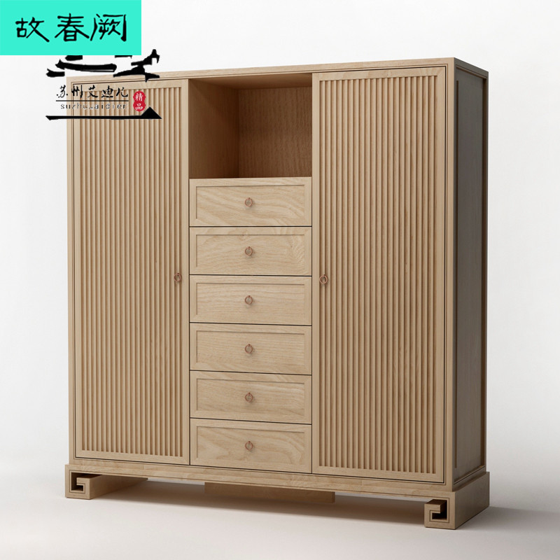 New Chinese hand painted solid wood wardrobe simple vintage bedroom storage closet China Wind hotel Cloister furniture Customized