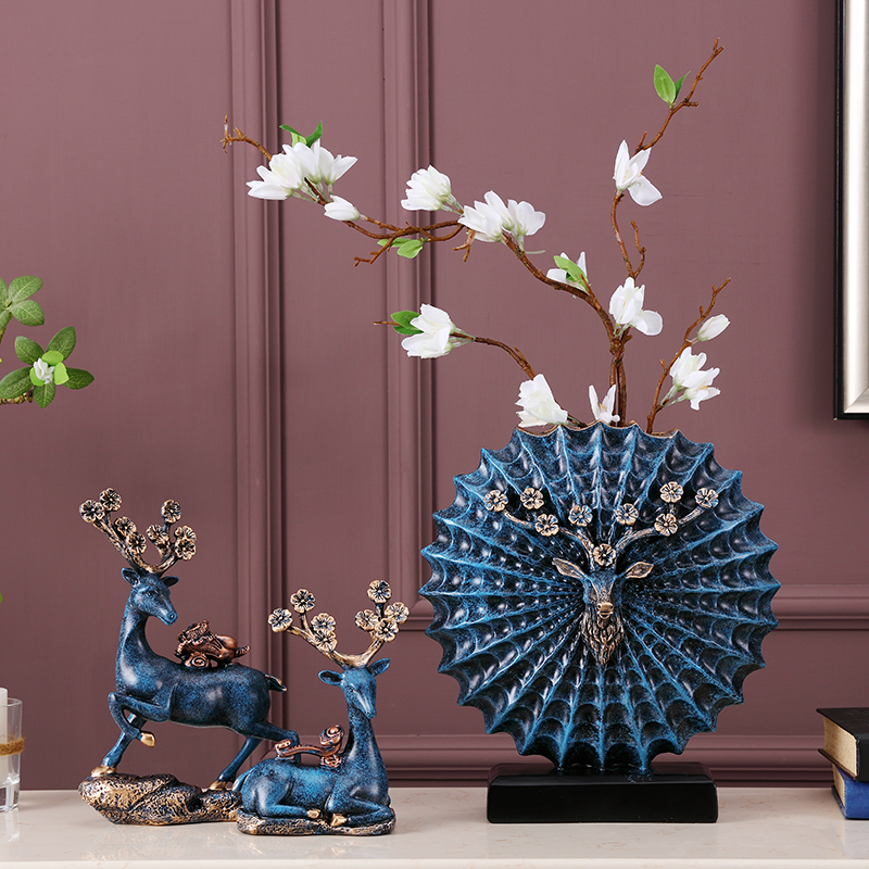 European three-piece vase decoration Creative flower flower arrangement decoration craft gift decoration Living room entrance TV cabinet Deer decoration