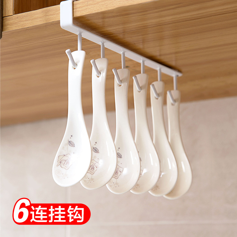 Kitchen overall cabinet rack free punching wall hanging row hook hanging rod pot spatula pot brush hanger wardrobe organizer