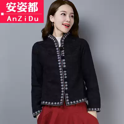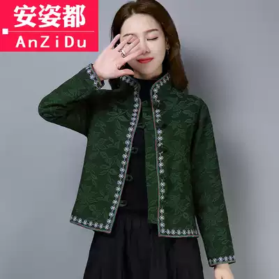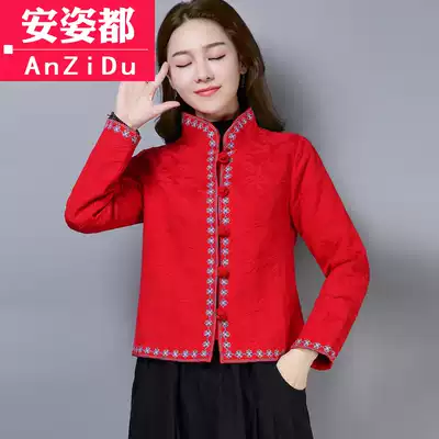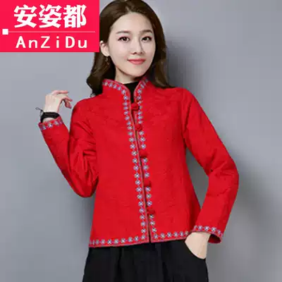 New year red Tang costume autumn and winter retro tea clothing Chinese style women cheongsam jacket ethnic style embroidery Chinese jacket