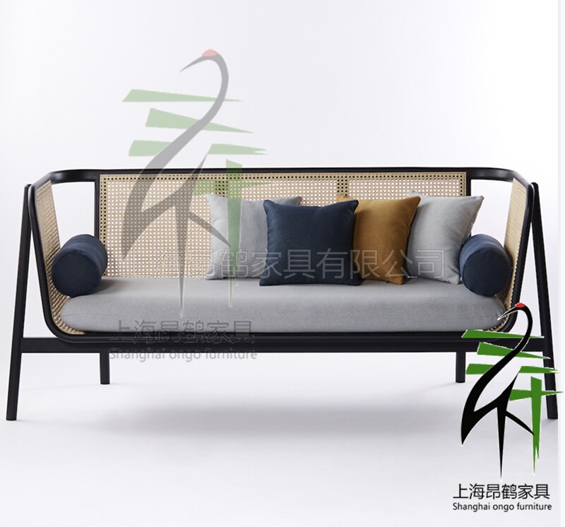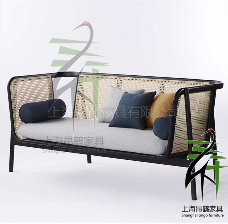 Southeast Asia single balcony sofa chair rattan leisure negotiation chair American solid wood multi-seat retro fabric rattan chair
