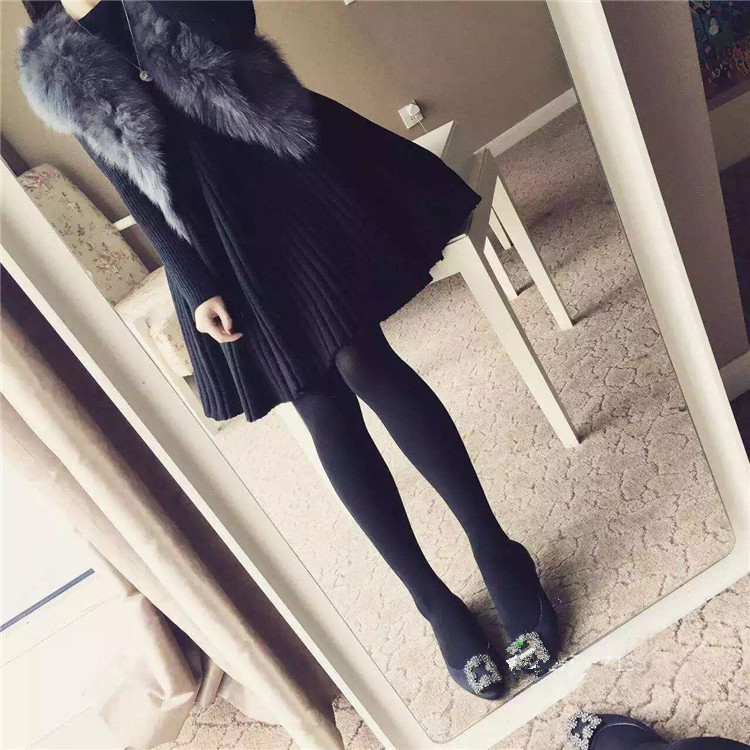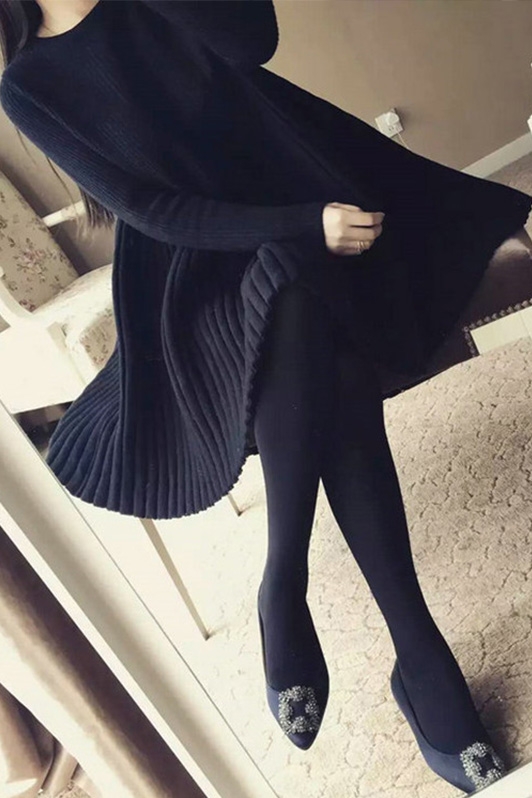 Hepburn little black dress Hong Kong style women's chic tutu skirt knitted dress lazy wind sweater skirt a-line bottoming skirt