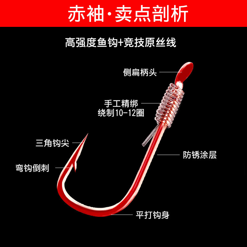 Red sleeve tied good fish hook set full set of red sleeve line double hook finished anti-winding fishing line fishing gear fishing supplies
