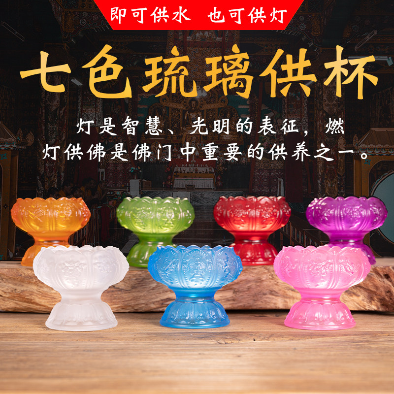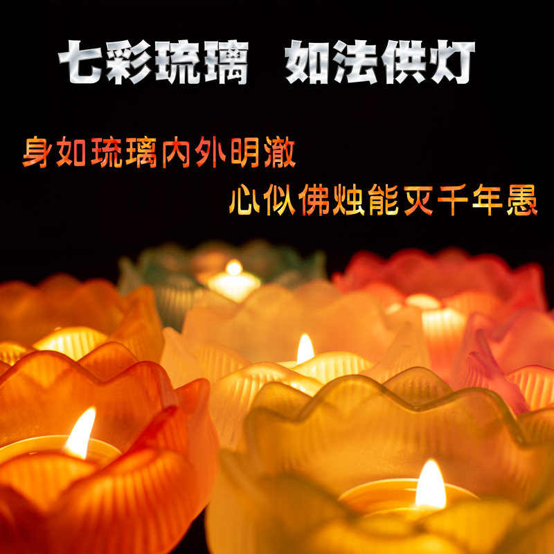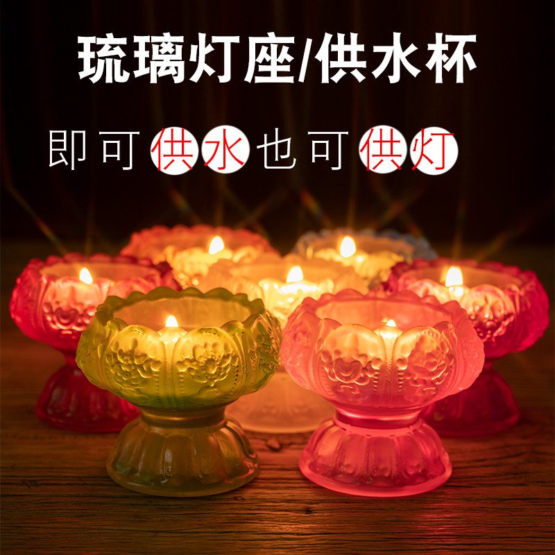 Glazed lotus crisp oil lamp holder Home windproof for lamp Seven colorful pendulum pieces Eight auspicious for a cup water purifying cup candle candle holder