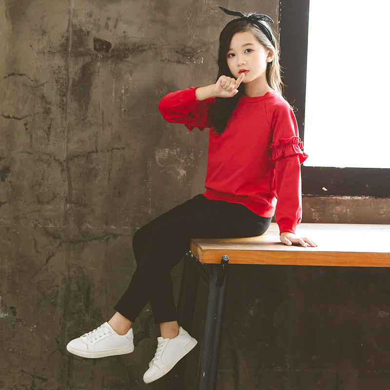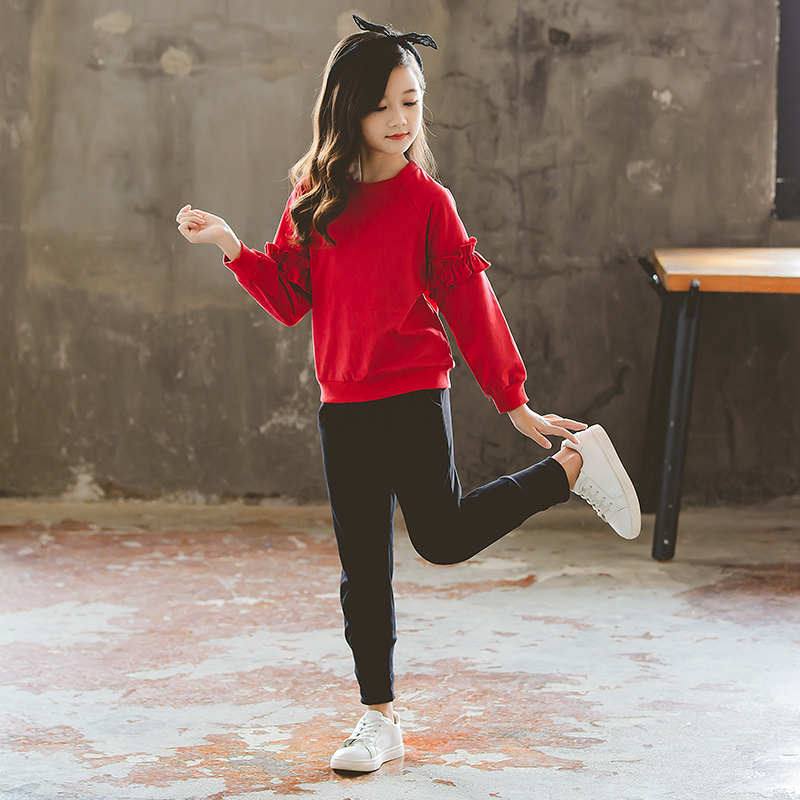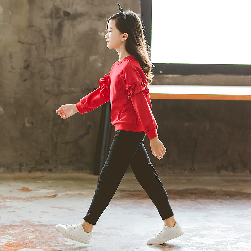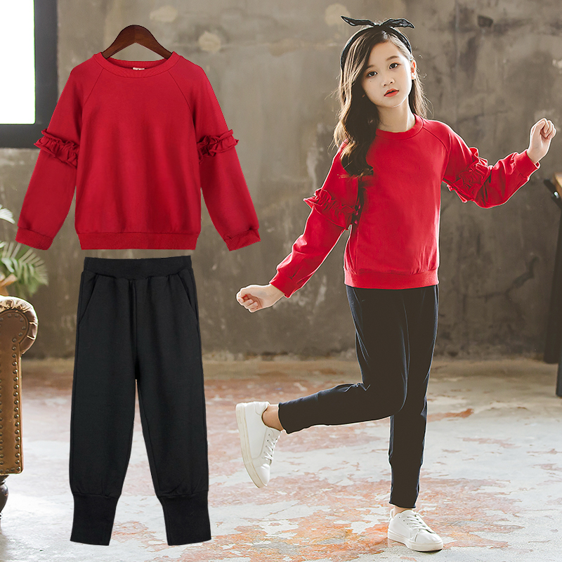 Red top, black pants (spring and autumn), yellow thick cotton T, black pants (spring and autumn), red thick cotton T, mesh culottes, two-piece set of yellow thick cotton T and black pants (