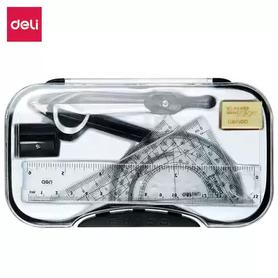 Deli compasses students use drawing drawing drawing tools set ruler student stationery a set of multi-functional junior high school students seven sets of simple ruler Primary School students examination to do the triangle
