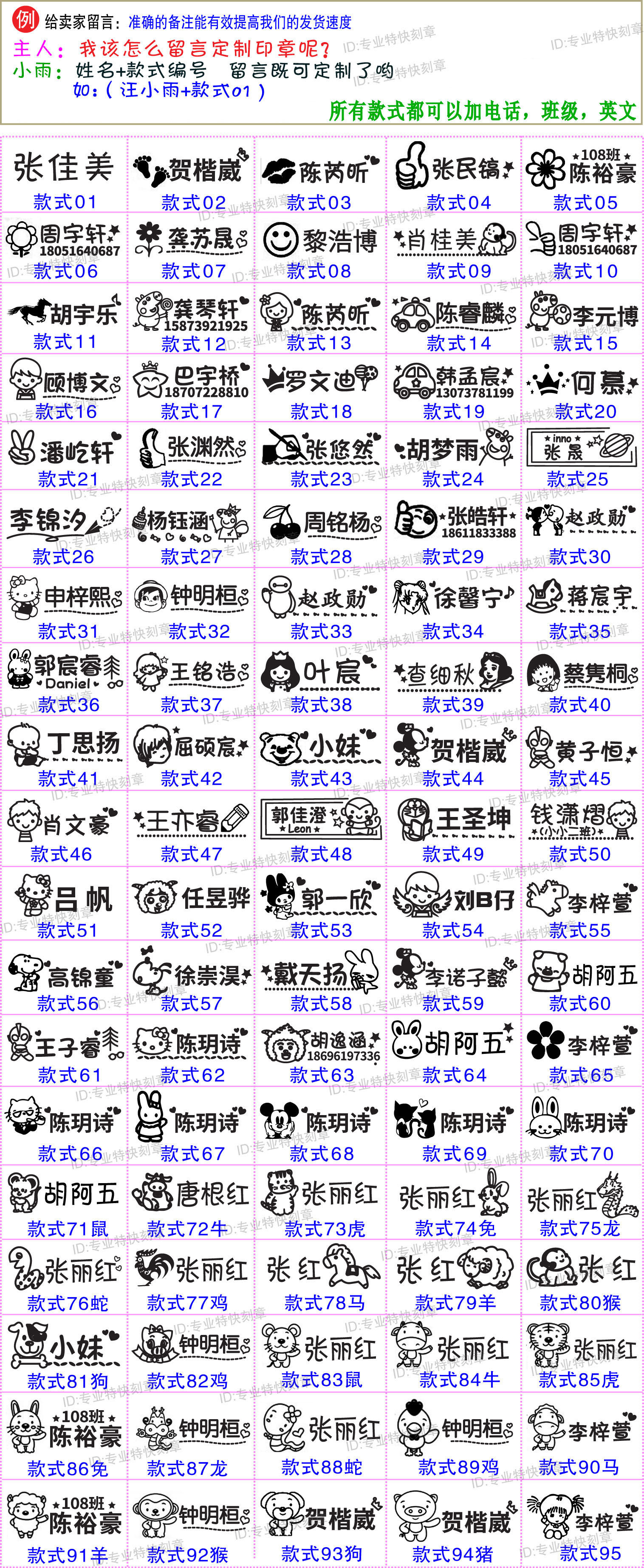 Customized waterproof washable color stamp cartoon baby name clothing student kindergarten children's name clothing stamp