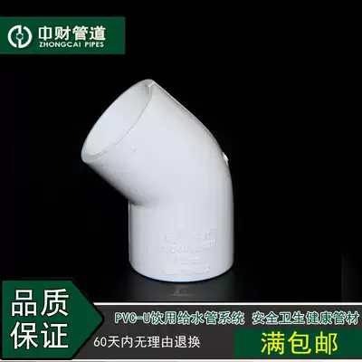 Zhejiang Zhongcai pipeline UPVC environmental protection drinking tap water supply pipe Municipal home improvement pipe fittings 45 degree elbow