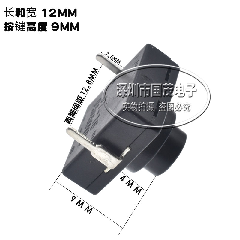 112D flashlight switch button 2-pin power switch self-locking miniature button Length 12 width 12 height 9 1