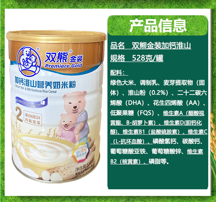 Double Bear Rice Flour Baby Full Section Nutrition Rice Burnt Iron Zinc Calcium Milk Rice Flour baby Deputy food for 6-36 months 528g canned