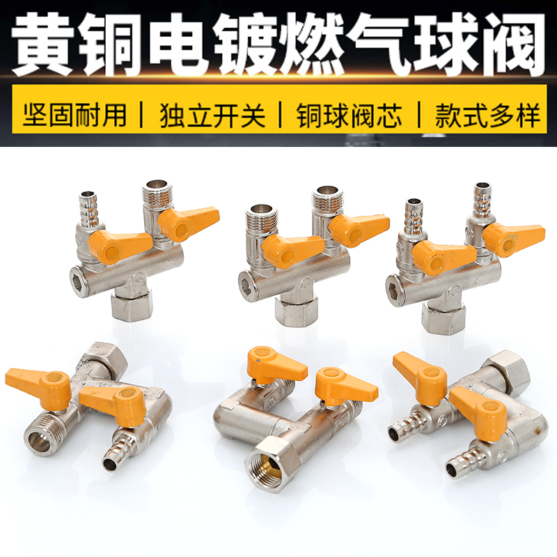 Copper ball valve Three-way four-way joint One-way two-way water pipe switch Day water heater Gas valve faucet water separator