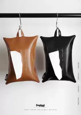EasyGood Simple Nordic PU leather multi-function hanging tissue box Car desktop bed removable toilet paper bag