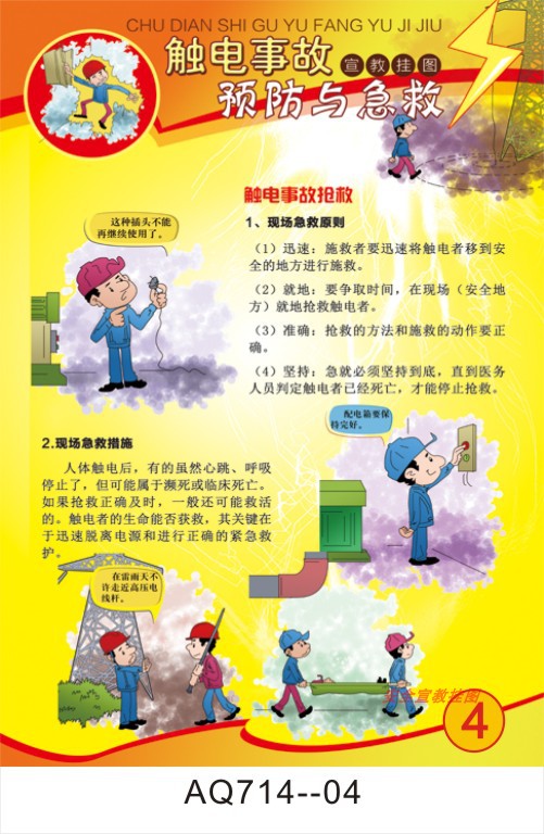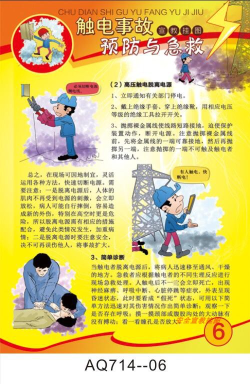 Poster making of electrical attention for electric disengagement from workplace on electric shock prevention and first aid publicity chart